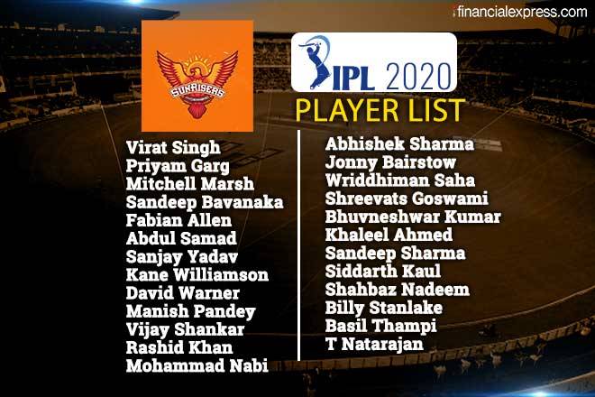 List of Retained Players: Kane Williamson (captain), Khaleel Ahmed, Sandeep Sharma, Siddarth Kaul, Billy Stanlake, David Warner, Manish Pandey, Jonny Bairstow, Wriddhiman Saha, Shreevats Goswami, Bhuvneshwar Kumar, T Natarajan, Abhishek Sharma, Shahbaz Nadeem, Vijay Shankar, Mohammad Nabi, Rashid Khan, Basil Thampi.