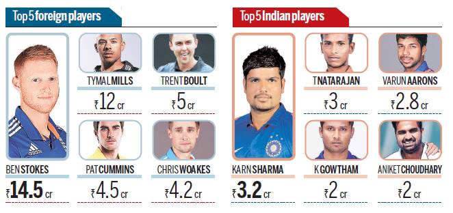 All-rounders and fast bowlers, especially from England, were in big demand at the IPL auction on Monday. England’s Ben Stokes became the most expensive player of the auction when Rising Pune Supergiants bought him for R14.5 crore, just R1.5 crore short of the all-time high price for a player in IPL auctions. His fellow player from England Tymal Mills was purchased by Royal Challengers Bangalore for R12 crore.