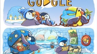 The Google doodle features penguins and parrots arranging to spend the big day together. The cute animated images show the…