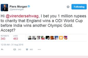 The Twitter battle between Virender Sehwag and British journalist Piers Morgan is becoming intense with the TV news presenter betting…