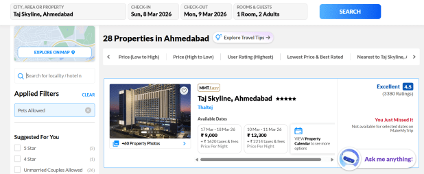 Luxury hotels like ITC Narmada and Taj Skyline are reporting nearly 100% occupancy. Rates are currently hovering between Rs 60,000 and Rs 1,00,000 per night for match-day eve.