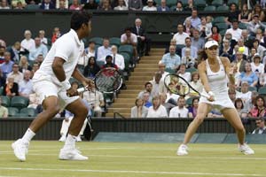 In no time Paes and Hingis pocketed the first set as all they needed was 19 minutes to nose ahead. Two broke Babos in the fourth game and Peya in the sixth for a 5-1 cushion. Hingis served out the set when Paes smashed a volley winner.