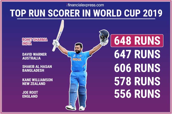 Team India opener Rohit Sharma was on a roll during the league stages of the tournament and scored 5 centuries in the 8 matches that India played. He was dismissed for 1 in the semifinal against New Zealand, which was what separated him and David Warner on the batting charts. While Rohit Sharma ended with a tally of 648 runs, Australia’s Warner had 647 to his name.