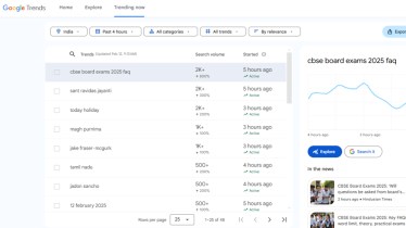 CBSE will kickstart Class 10th and Class 12th board examinations 2025 from February 15. With the exams just around the corner, students are frantically searching for important parts of the syllabus, questions and some last-minute tips. So much so, the search query ‘cbse board exams 2025’ has topped the Google Trends chart on Wednesday.