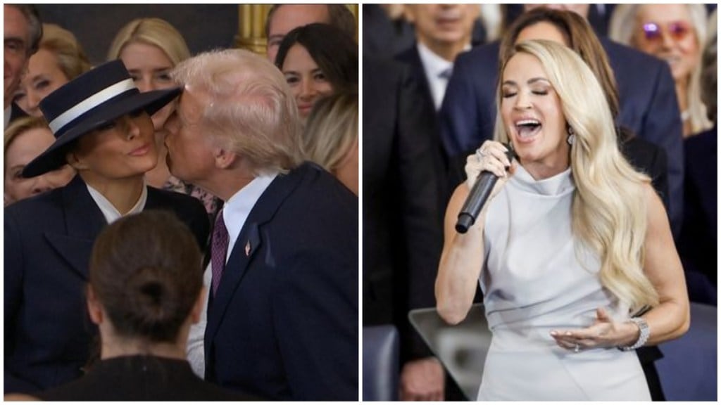 Country music star Carrie Underwood delivered a stunning rendition of ‘America is Beautiful’ at Donald Trump’s presidential inauguration on Monday. When the background music unexpectedly failed, Underwood remained calm and continued singing without missing a beat. The Armed Forces Chorus and the United States Naval Academy quickly stepped in to assist, ensuring the performance went smoothly despite the technical glitch.