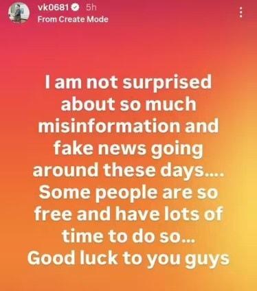 In a vague Instagram story by Vikas Kohli, he wrote, ” I am not surprised by so much misinformation and fake news going around these days… some people are so free and have lots of time to do so… good luck to you guys.” However, in the post he did not give any clarification about the Grugram property transfer to his name by Virat Kohli.