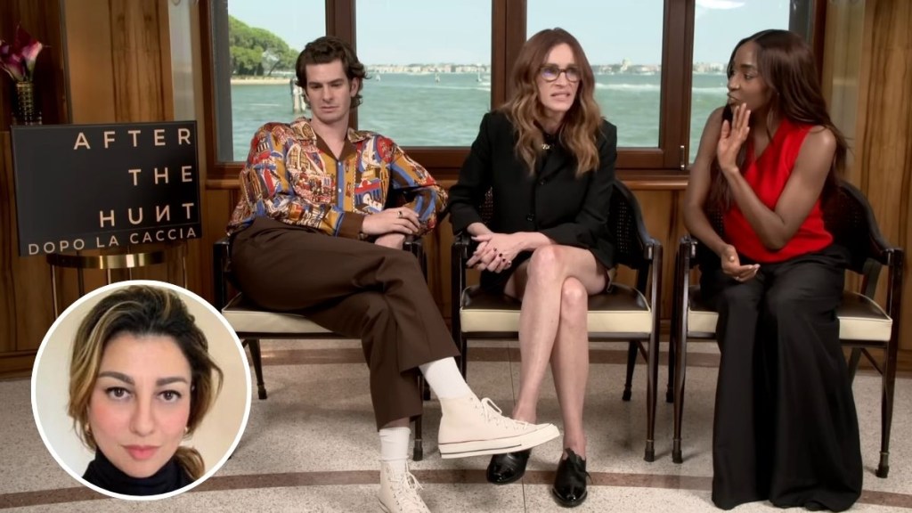 After the Hunt co-stars Ayo Edebiri, Julia Roberts and Andrew Garfield recently became the subjects of a viral on-camera interview moment. Post their involvement in the Luca Guadagnino-helmed psychological thriller, the acting trio made headlines for a now-trending interaction with Italian journalist Federica Polidoro at the Toronto International Film Festival.