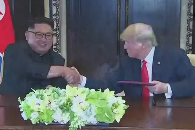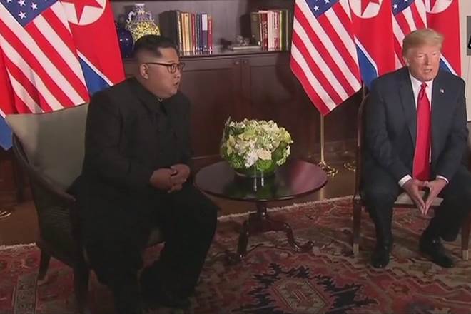 Trump-Kim meeting LIVE updates: US President Donald Trump and North Korean leader Kim Jong-un have created history with an unprecedented summit that saw both of them shaking hands. Trump and Kim are now participating in a one-on-one meeting, after initial greeting, and only translators are reportedly present. Subsequently, there was an expanded bilateral meeting, and a working lunch. Trump is said to leave Singapore at 8.00 pm local time on Tuesday for his country.