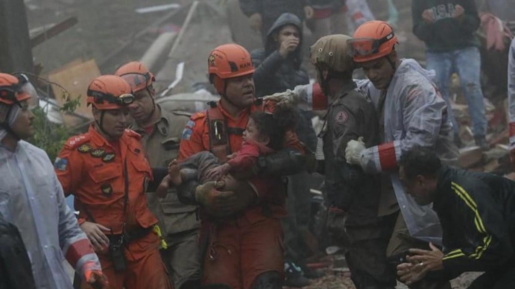 The girl was pulled out alive in the city of Petropolis, 69 kilometers (43 miles) north of Rio. Rescue teams had to stop their work Friday night due to risks of new landslides in the region.