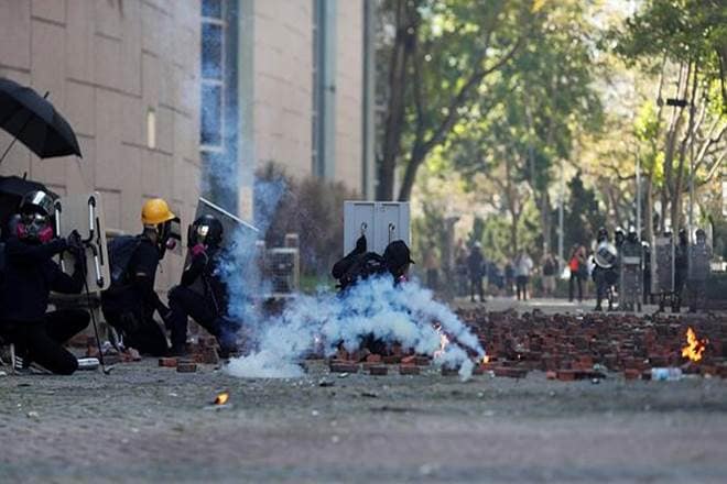 Fresh violence erupted around a besieged Hong Kong university campus on Sunday morning, as protesters braced for a possible final police push to clear them after fiery clashes overnight.