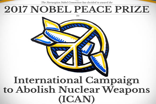 The International Campaign to Abolish Nuclear Weapons (ICAN) is the winner of Nobel Peace Prize 2017. Launched in 2007, ICAN works to promote the implementation of the ‘Treaty on the Prohibition of Nuclear Weapons’. This Geneva-based group is currently associated with hundreds of partners in over 100 countries. During the announcement of the Nobel Prize, Reiss-Andersen, chairman of the Committee, said that ICAN was awarded for “ts work to draw attention to the catastrophic humanitarian consequences of any use of nuclear weapons, and for its groundbreaking efforts to achieve a treaty-based prohibition on such weapons”. Previous Nobel Peace Prize winners like Desmond Tutu, the Dalai Lama and Jody Williams, have supported ICAN’s campaign.