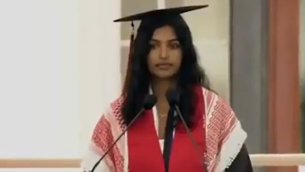 Vemuri addressed her classmates with an unflinching call for justice. “You showed the world that MIT wants a free Palestine,” she said, referencing student-led efforts urging the university to sever connections with the Israeli military. She didn’t shy away from criticising her own institution, accusing MIT of subjecting student activists to “threats, intimidation and suppression.” She added, “Right now, while we prepare to graduate and move forward with our lives, there are no universities left in Gaza,” to point the contrast between peers of her age in Gaza and the celebratory mood in MIT.