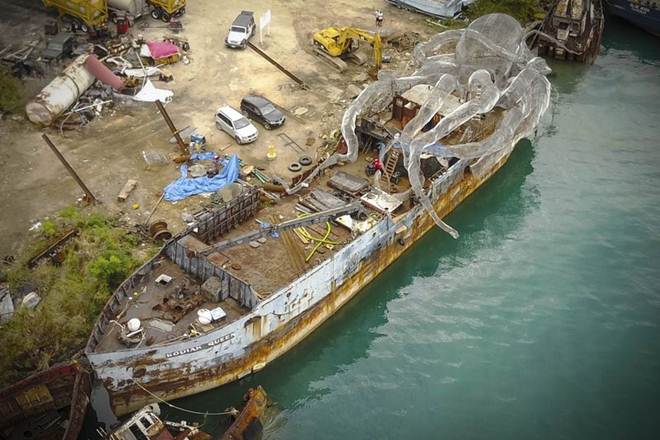 Restoring the Kodiak Queen has been a nine-month endeavor. Though the investment sum was undisclosed, the project is likely to have cost more than $4 million, which is what it cost to create and sink another artificial reef in Palm Beach, Fla., earlier this year. The project was made possible by funding from Maverick1000, a global network of industry disruptors; engineering help from B.V.I-based Commercial Dive Services; and the artistic vision of six creative masterminds from Secret Samurai Productions, Art Reef B.V.I.