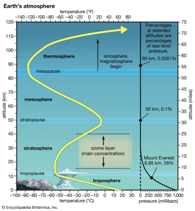 Near Space is that region of Earth’s atmosphere that extends from 20 to 100 km above sea level. It encompasses the stratosphere, mesosphere, and the lower thermosphere. It extends roughly from the Armstrong limit (above which humans need a pressure suit to survive) up to the Kármán line where Earth’s atmosphere ends and gravity is near zero. In simpler and understandable terms, near space is above heights where commercial airliners fly but below orbiting satellites. In technical terms, near space begins above the