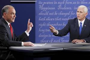 Kaine aggressively pressured Pence Tuesday night to vouch for Trump throughout the 90-minute debate, often citing the brash businessman’s own words. Pence defended Trump’s tax history, but maneuvered around criticism of Trump’s demeaning comments about women, his public doubting of President Barack Obama’s citizenship and broader questions about temperament.